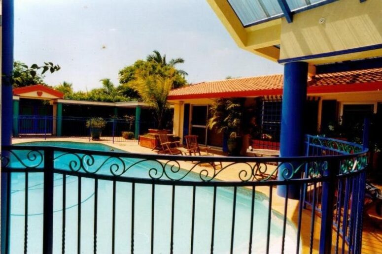 Wrought iron is commonly used around pools for both safety and practical visibility.