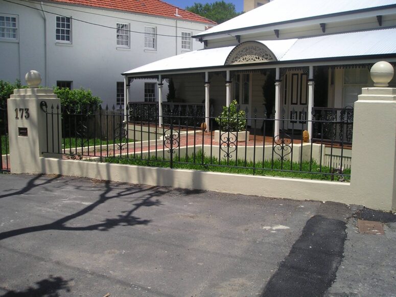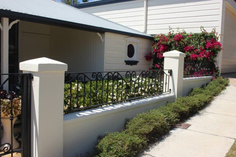 Not every front fence needs to make a statement. Lower-set wrought iron fences keep the frontage open while still defining the boundary.